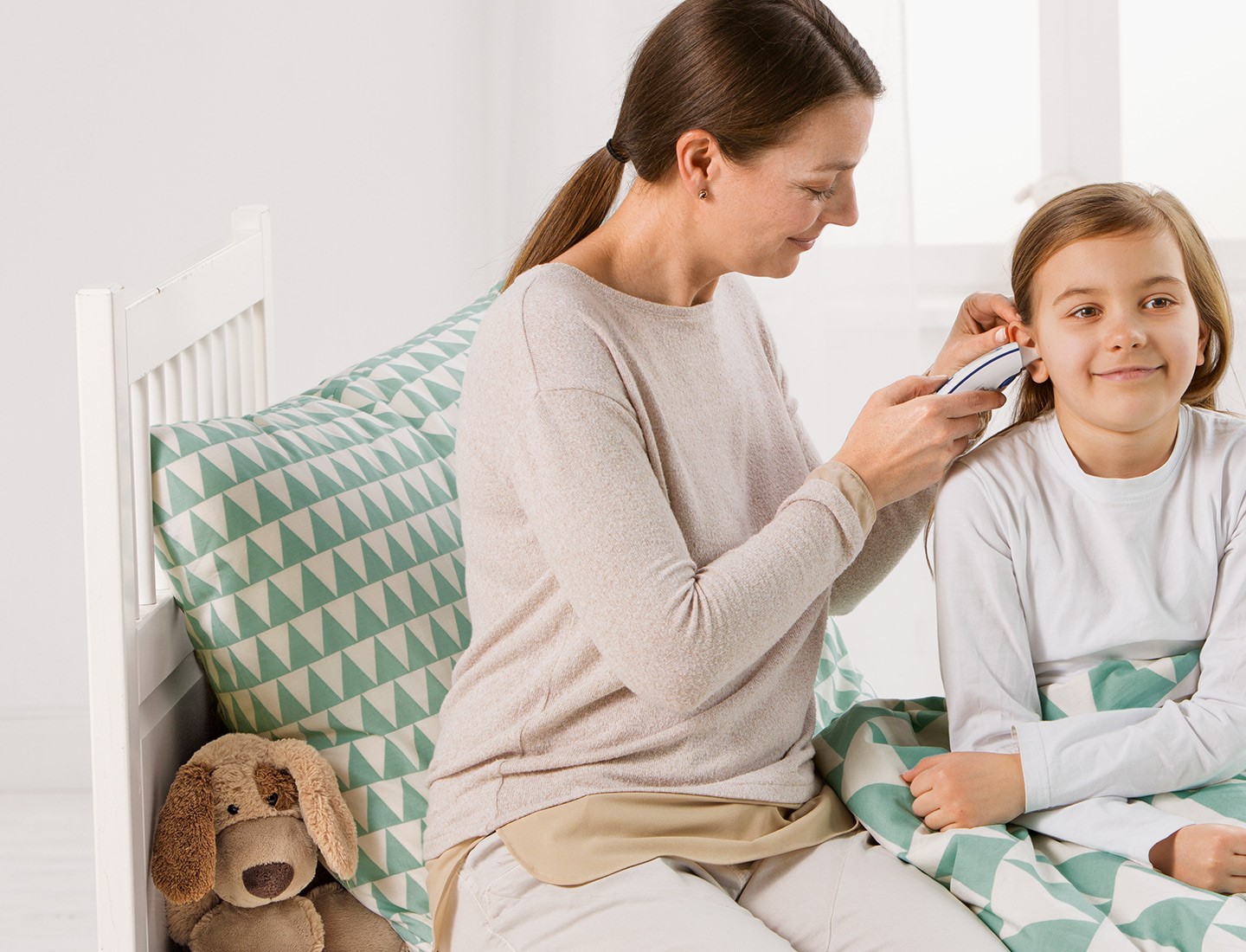 إليك كيفية الحصول على أكثر النتائج دقة: بما أن قناة الأذن منحنية بعض الشيء، عليك سحب الأذن بلطف إلى الوراء قبل إدخال طرف المستشعر فيها لكي يكون طرف المستشعر موجهًا نحو طبلة الأذن مباشرة. يقيس ميزان الحرارة الأشعة تحت الحمراء المنبعثة من وسط الأذن والقناة السمعية. يلتقط المستشعر هذه الأشعة تحت الحمراء ويحولها إلى قيم تدل على درجة الحرارة. ويتم الحصول على أفضل القيم في حال التقاط الأشعة تحت الحمراء من وسط الأذن (طبلة الأذن)، إذ إن الأشعة المنبعثة من الأنسجة المحيطة تعطي قيمًا أقل.