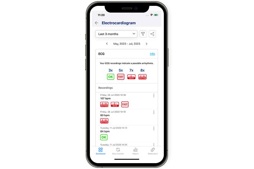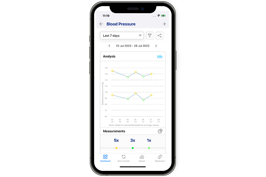 A one-stop tool that lets you become your own health manager. Get precise readings of your blood pressure and transfer the data to your smartphone or tablet for comprehensive graphs of your values. Assess your readings, compare data and quickly print the information or send it to your doctor via e-mail.