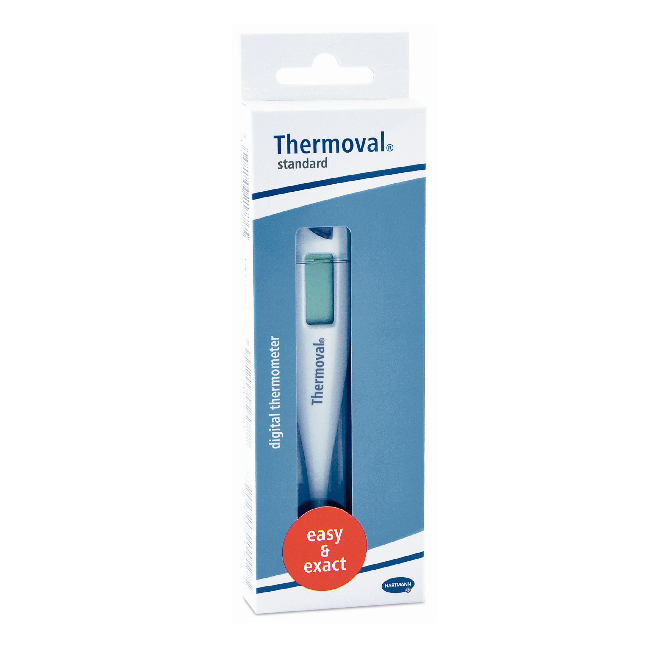 The Thermoval® Standard digital thermometer is a pen-type thermometer allowing to measure the temperature either by the mouth, under the armpit or by the rectum. It gives you fast results within 40-90 seconds depending on the measuring site.