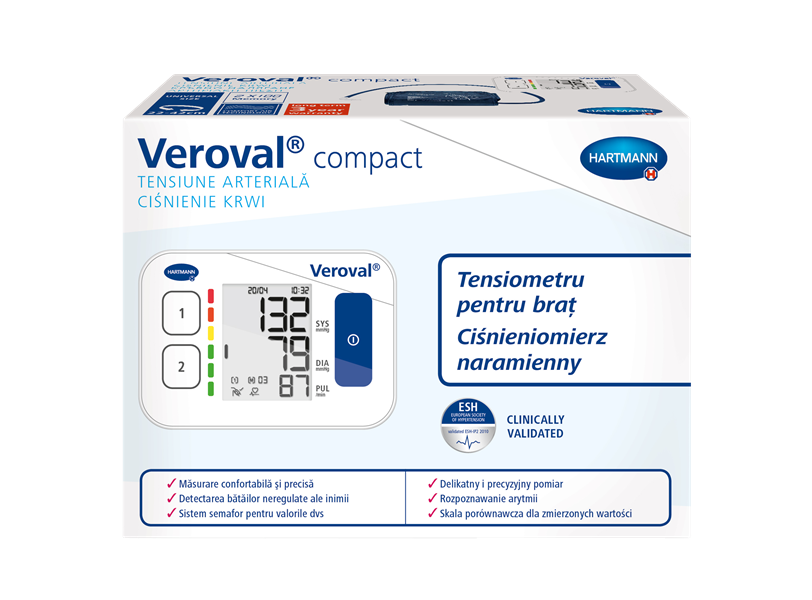 The proven high measurement quality of the Veroval® Compact upper arm blood pressure monitor has been approved by the European Society of Hypertension (ESH).
