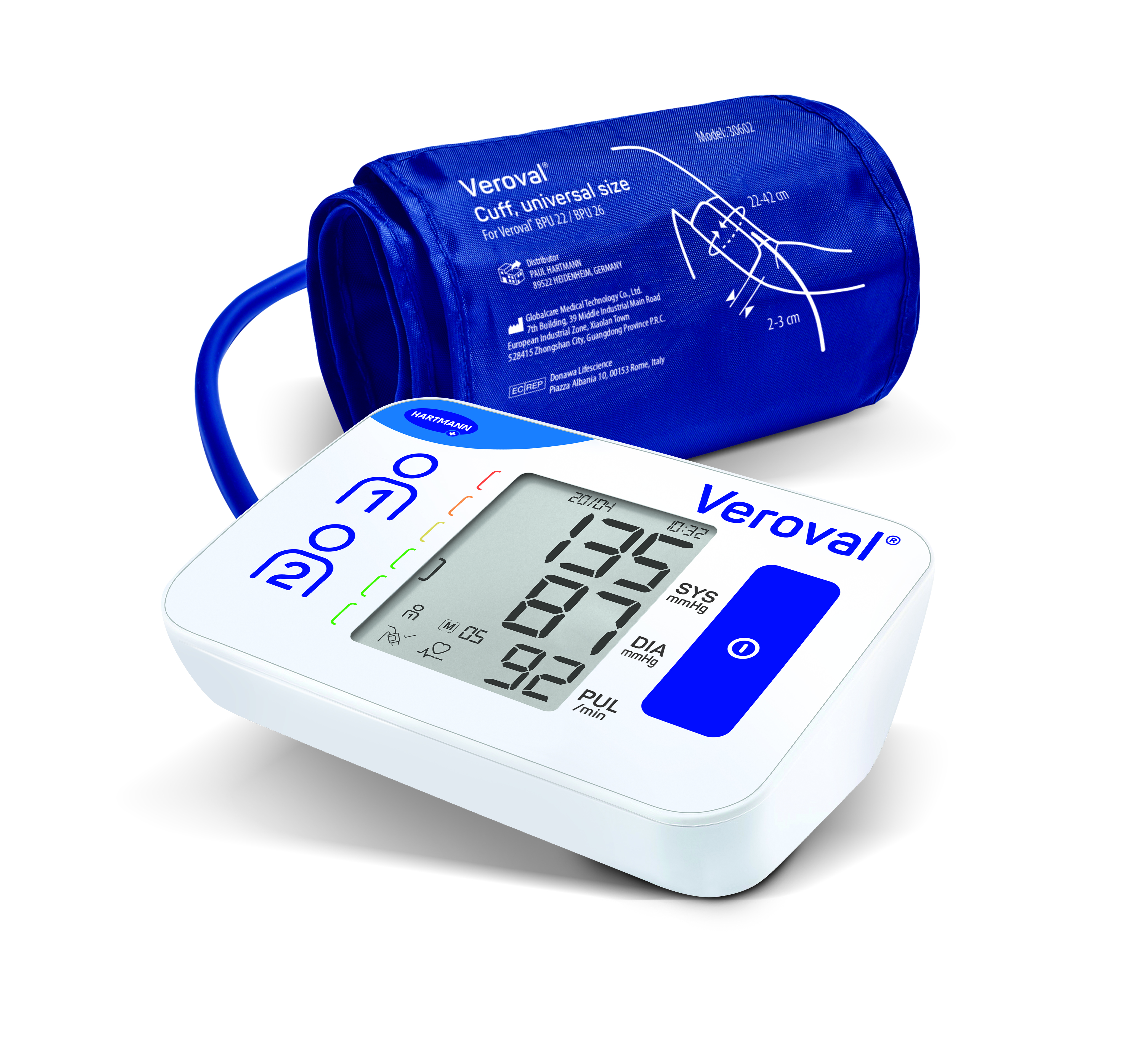 Le tensiomètre de bras Veroval®compact BPU 22 est destiné aux patients qui mesurent leur tension artérielle occasionnellement. Le dispositif affiche les valeurs mesurées sur un grand écran à haute lisibilité et vous permet d’analyser les résultats via un système de feux de signalisation. La pression de gonflage personnalisée garantit par ailleurs des mesures réalisées dans des conditions de confort optimales.