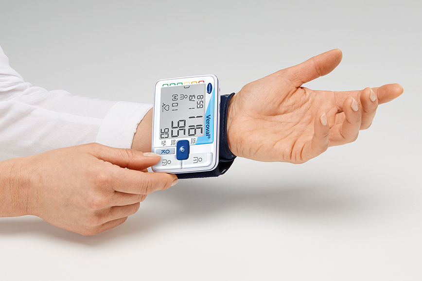 The fully automatic Veroval® Premium wrist blood pressure monitor for patients who measure their blood pressure regularly offers high measuring accuracy and an easy handling. An important feature of the device is the visual position control for the correct measuring position.