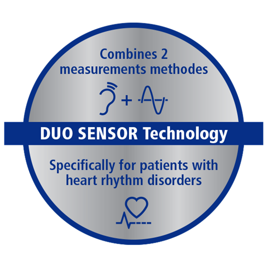 Miközben az automata vérnyomásmérők többsége kizárólag az oszcillometrikus technológiát alkalmazza, amely az artériában keletkező pulzushullámokat értékeli ki, a DUO SENSOR technológia a nagyon pontos Korotkoff módszer is használja, mely során egy igen érzékeny mikforon méri a szívhangokat. Az orvosok is a Korotkoff technológiát használják a vérnyomásmérésre, mivel ez egy igen megbízható mérési módszer és pontos mérési értékeket ad szívritmuszavarokban szenvedő betegek esetében is.