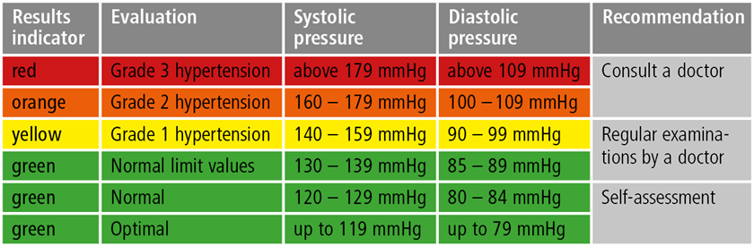 Volgens de WHO en andere toonaangevende gezondheidsorganisaties worden de systolische en diastolische waarden van bloeddruk verdeeld in vijf categorieën: normaal (120/129 systolisch en 80-84 mmHg diastolisch), normale drempel (130-135 systolisch of 85-89 mmHg diastolisch), Graad 1 hypertensie (140-159/90-99 mmHg of hoger), Graad 2 hypertensie (160-179/100-109 mmHg) en Graad 3 hypertensie (ook wel hypertensieve crisis genoemd) met >179/>110 mmHg.