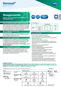 Met de “Veroval® Maagpreventie zelftest” kunt u snel en veilig testen of u deze bacterie draagt en of u eventuele voorzorgsmaatregelen zou moeten nemen. Alles wat u nodig heeft is de zelftest, een druppel bloed en tien minuten van uw tijd.
