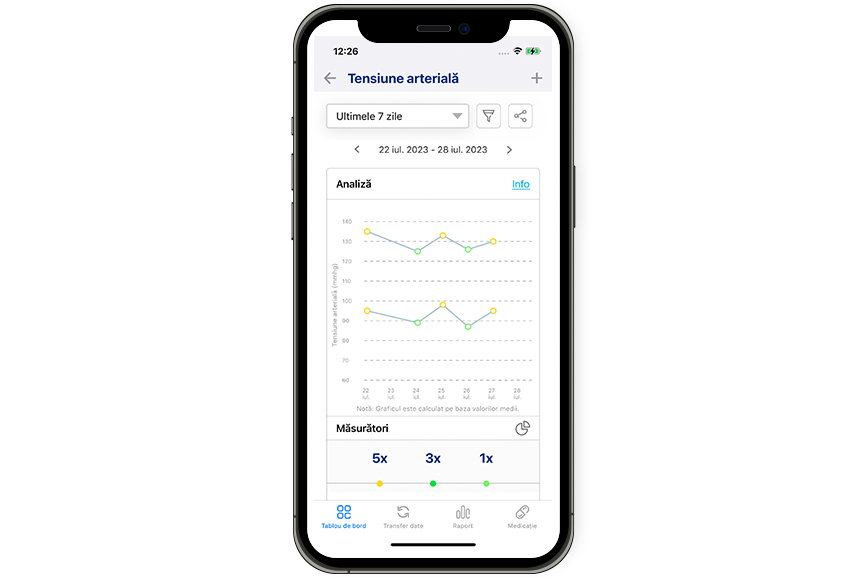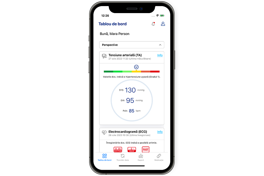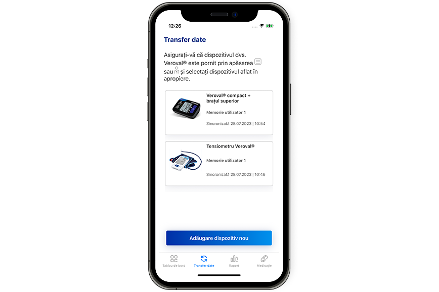 Adăugând aplicația Veroval® medi.connect la dispozitivul Veroval® compact + sau 2 în 1 Veroval® ECG și tensiometru pentru braț, aveți un instrument unic care vă permite să vă gestionați mai ușor starea de sănătate. Obțineți citiri precise ale tensiunii arteriale și transferați datele pe smartphone sau tabletă pentru a obține grafice detaliate ale valorilor dvs. Evaluați-vă citirile, comparați datele și imprimați rapid informațiile sau trimiteți-le medicului dumneavoastră prin e-mail sau WhatsApp.